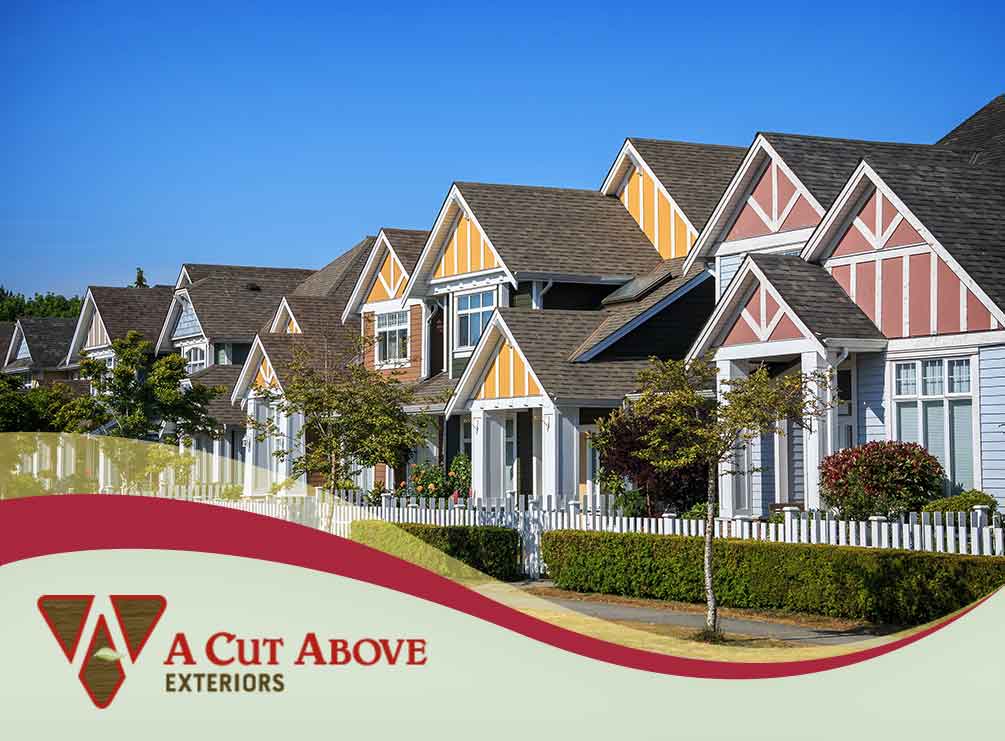 3 Common Siding Issues and How We Can Help Prevent Them Siding is constantly exposed to the elements, so it’s only reasonable to expect it to develop issues over time. However, knowing the cause of these problems and having a capable siding contractor like us […] READ MORE 4 Roof Designs and Their Respective Architectural Style It’s not a stretch to say that the roof is what defines the look of the entire house. This important structure is far from just a component for cover and can range from the standard triangle to more intricate and asymmetrical designs. […] READ MOREThe Distinct Benefits of our HardiePlank® Siding A Cut Above Exteriors is proud to offer James Hardie® HardiePlank® siding as the superior choice for our customers. This low-maintenance, durable, and lasting siding material can provide distinct benefits for your home that most siding options cannot. To consider just how well it compares to other siding products, […] READ MORE 4 Reasons You Should Consider Composite Roofing Composite roofing is the next step up from typical asphalt shingles, and it offers several advantages over the latter. As a certified CertainTeed SELECT ShingleMaster™ Contractor, A Cut Above Exteriors shares a list of the benefits […] READ MORE Striking Color Combinations For Siding and Exterior Shutters Color can make or break the overall look of your home. This is especially true when it comes to the siding and shutters because they are the first things that passersby will see when looking at your home. If you want a home that looks good, consider asking about these color combinations from your siding […] READ MORE « Previous 1 … 11 12 13 14 15 … 26 Next »